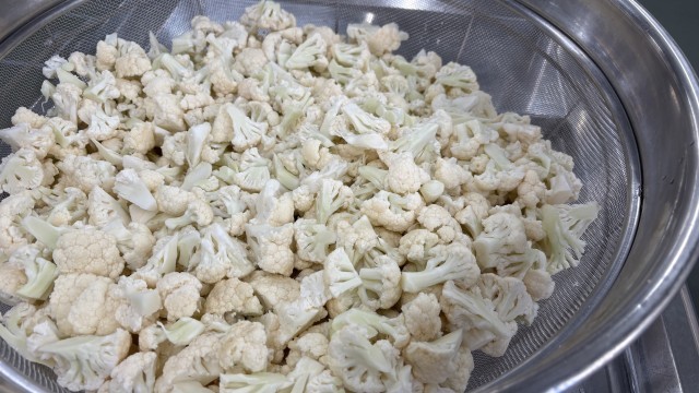 今日はカリフラワーのピクルスです。今が旬のカリフラワーを歯応えよくゆで、甘酸っぱいピクルス液につけこみました。