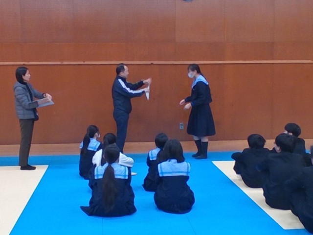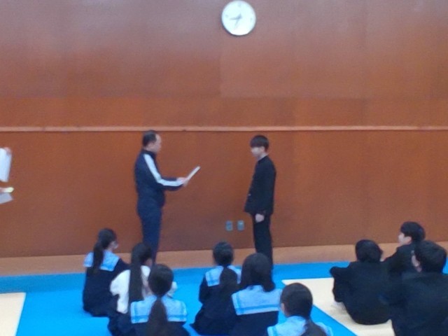 先生からは、先週に行われた「百人一首大会」のふりかえりと、成績発表、そして表彰が行われました。