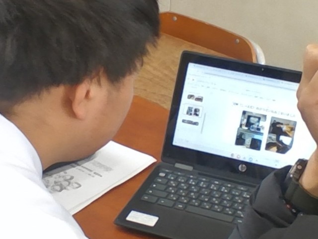 引き続き、それぞれの学習者用端末を使って、職場体験学習で経験したことや、学んだことをパワーポイントにまとめています。