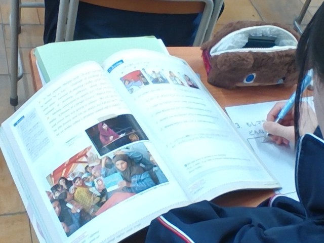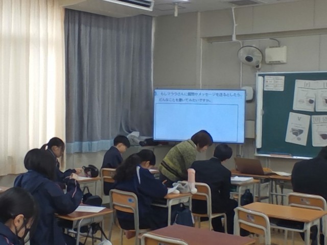 教科書に登場する「マララさん」に向けた英語のお手紙を書いています。