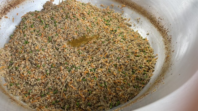 今日は鶏ごぼうごはんです。甘辛いひき肉とごぼうのそぼろを、ごはんに混ぜていただきます。