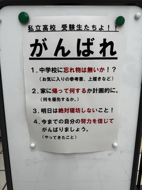 写真は、昨日(2月9日)の下校時に、正門に置かれていた、先生たちからのメッセージです!