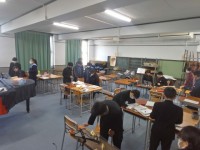 男女とも、それぞれ教室にて、保健分野の学習に取り組んでいます。