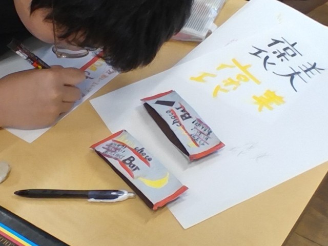 お菓子のパッケージデザインと紙粘土でお菓子そのものを作る取組が最終盤を迎えています。