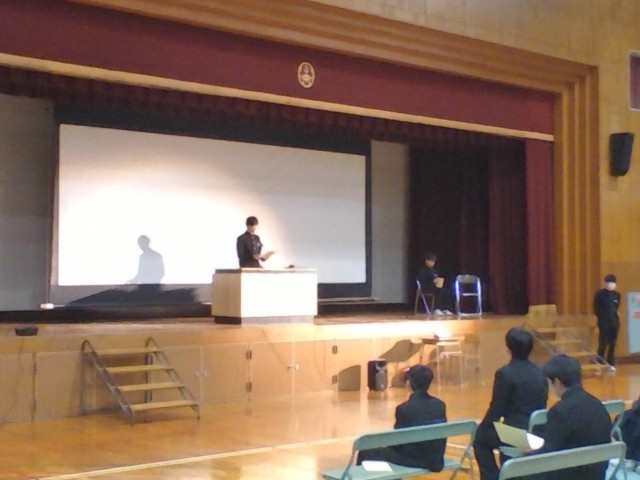 選択課題の発表に引き続いて、「3年生に向けて」をテーマに、一人ひとりが、1分間スピーチを発表しました。