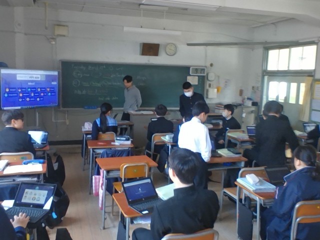 学習者用端末を使って「kafoot」で英語の学習に取り組んでいます。