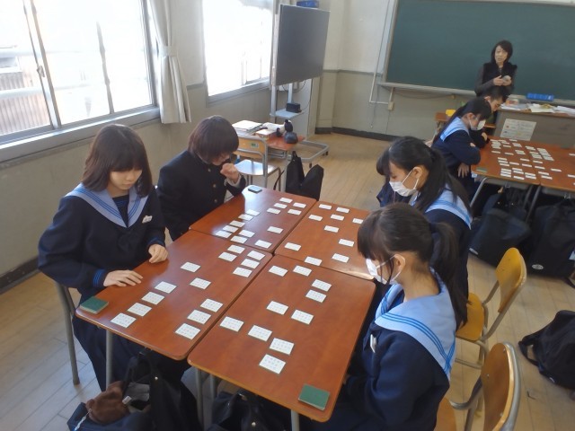 百人一首のカルタ取りの練習に取り組んでいます。