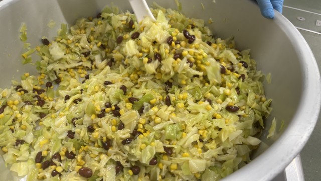 今日は金時豆と野菜のサラダです。ほくほくした金時豆の食感は、サラダに入れると良いアクセントになります。