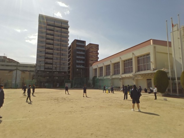 女子は運動場で「ベースボール(野球)型」の球技に、それぞれ取り組みました。