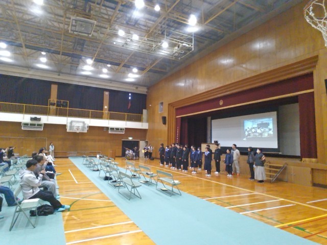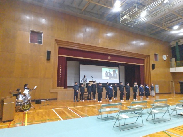 明日(3月17日)に学年行事として行う「学習発表会」に向けて、体育館でリハーサルに取り組みました。
