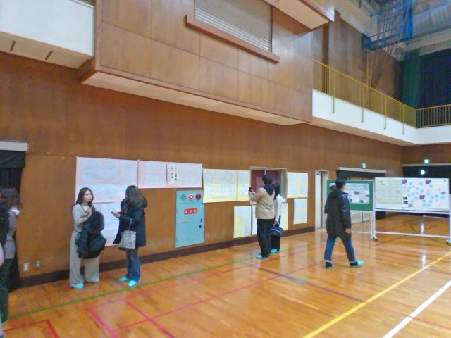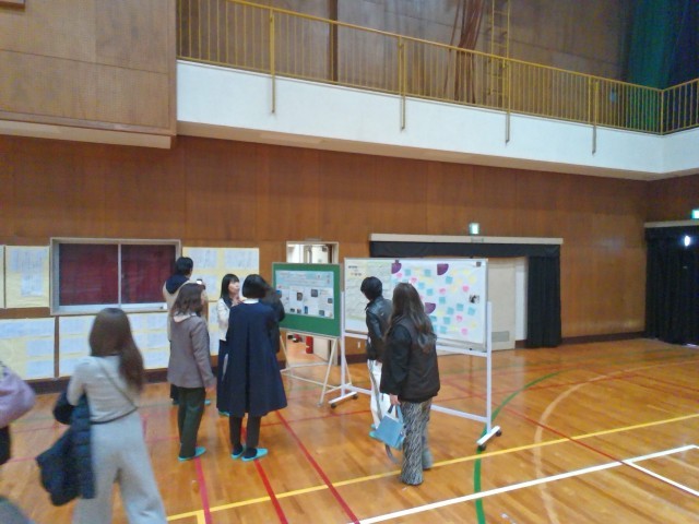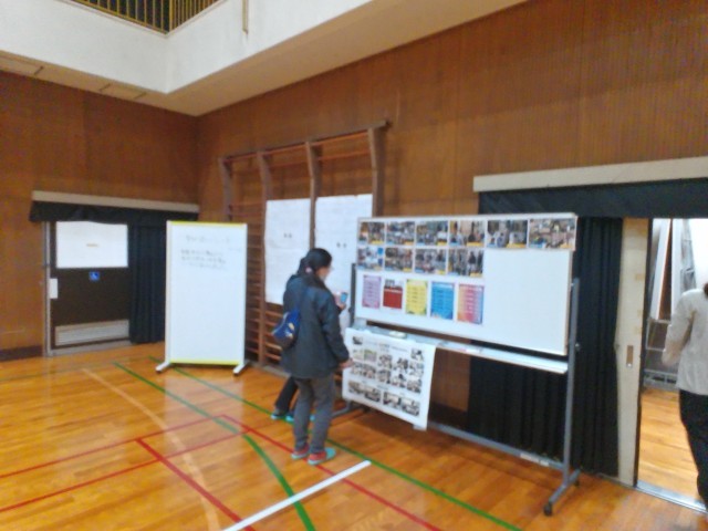 会場の体育館後方には、これまでの取組の成果が展示されていました。