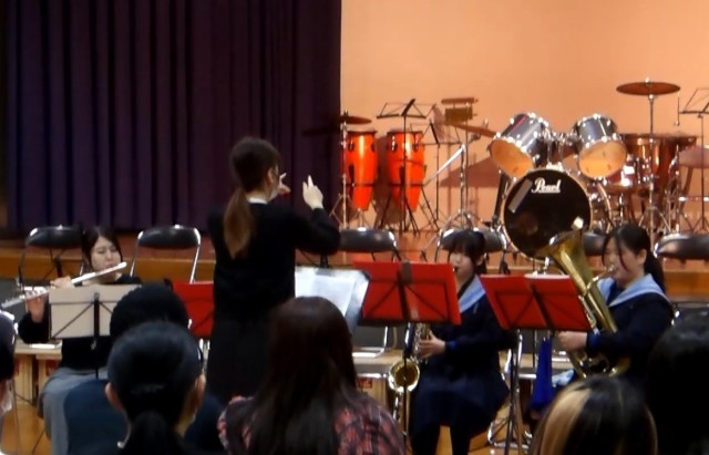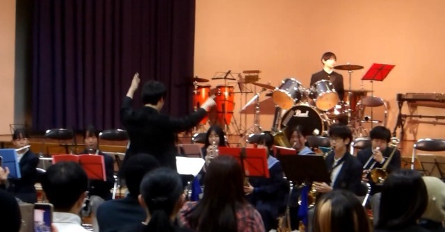 本日(3月21日)の午後、本校に隣接する大阪府立今宮高等学校の多目的ホールを会場に、「なにわ区ジョイントコンサート」が開催されました。このコンサートは、区内3中学校(木津中・難波中・日本橋中)と今宮高校の吹奏楽部が一堂に会して行われました。本校吹奏楽部は、単独や合同で演奏に参加し、素晴らしいハーモニーを奏でてくれました。