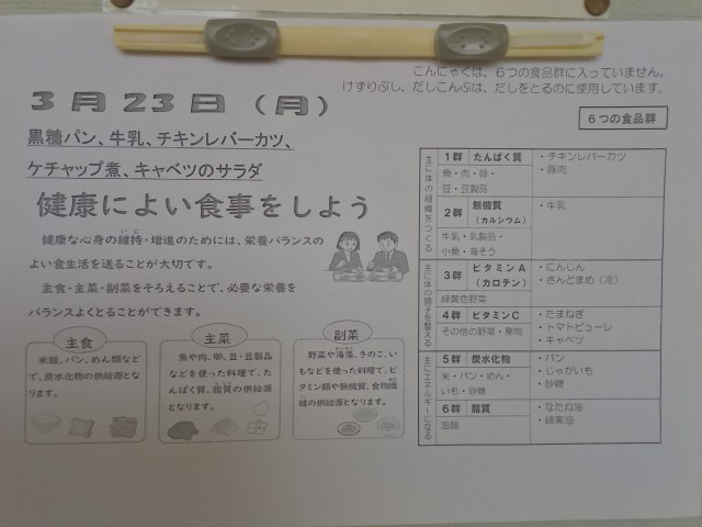 3月23日(月曜日)の給食です!
