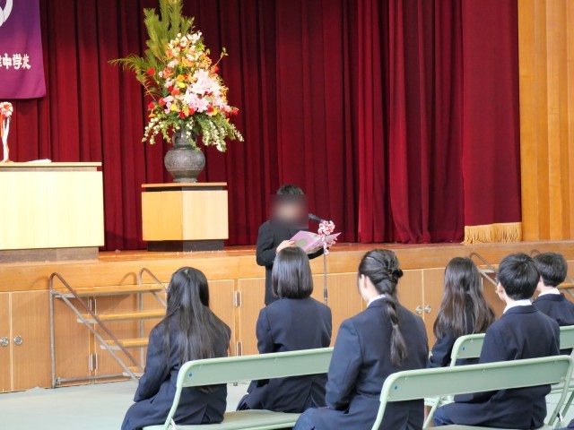 新3年生代表による心温まる歓迎の言葉には、これから始まる中学校生活への
