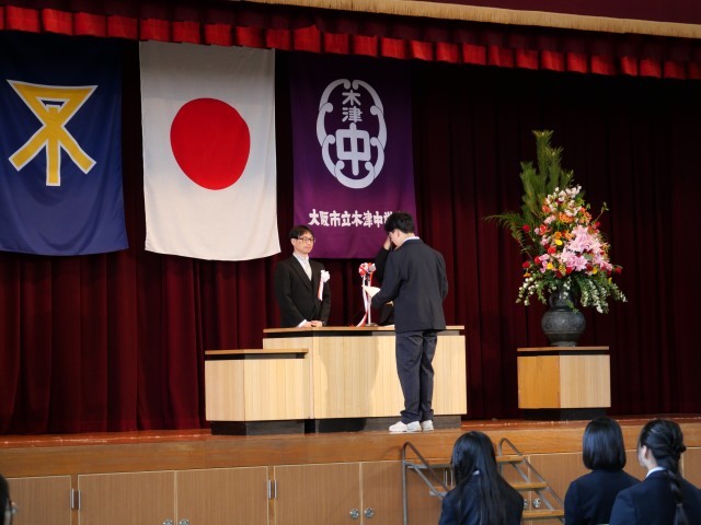 代表生徒に「修了証」を授与し、