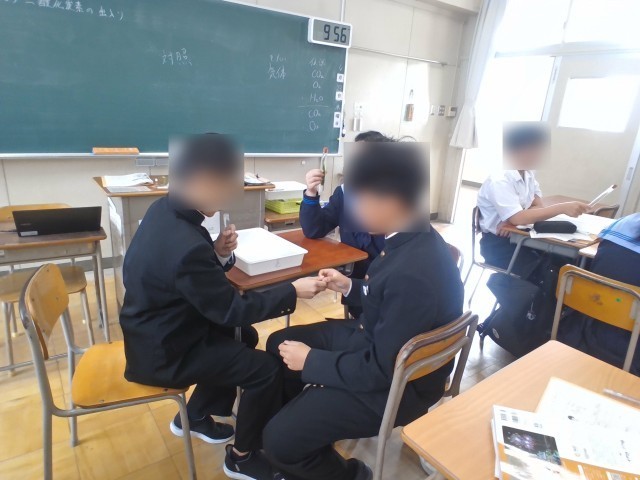 理科の授業では、「光合成」をテーマに実験に取り組みました。生徒たちは試験管に二酸化炭素を入れ、条件の違いによる変化を観察しながら学びを深めています。実際に目で見て確かめることで理解が進み、主体的に学ぶ姿が見られました。