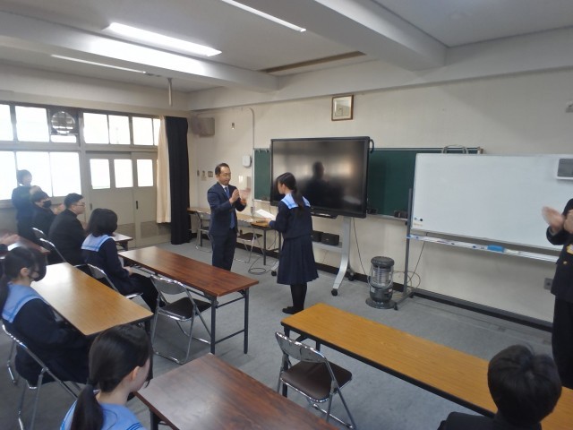 3年生の学年集会では、日本語の通級指導が修了した生徒に「修了証」を授与しました。