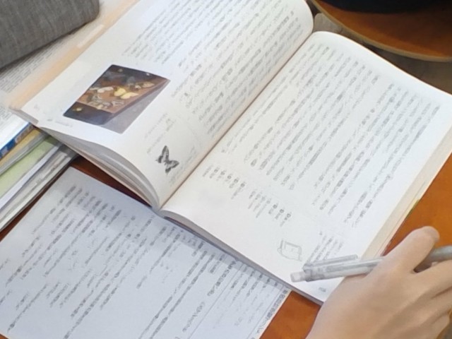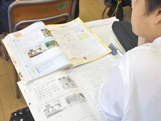 教科書の英文を、1文1文、丁寧に意味を確認していっています。