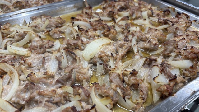 今日は豚肉のスタミナ焼きです。にんにく、白みそ、しょうゆ、砂糖で下味をつけた豚肉と玉ねぎをこんがり焼きました。
