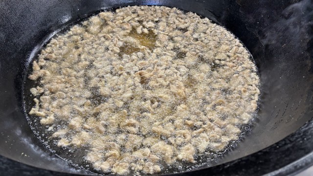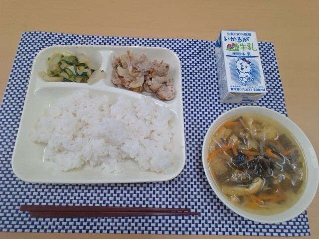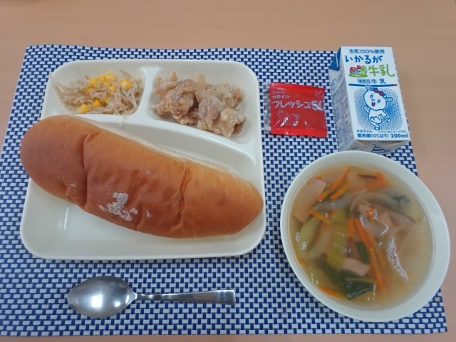 今日は鶏肉のからあげです。しょうがやにんにくで香りよく下味をつけた鶏肉を揚げた、生徒に人気の献立です。