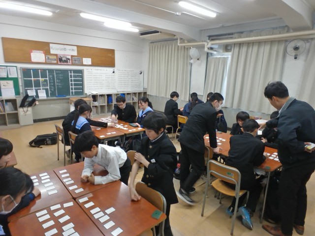 5・6時間目に、格技室にて2年生の百人一首大会が行われました。