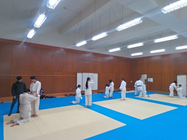 安全面に配慮しながら、組手から足払いの練習に取り組んでいます。