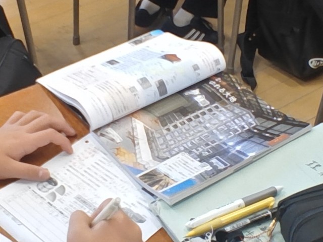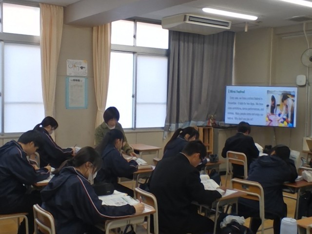 学校行事を紹介した英文を読み取り、問題に取り組んでいます。