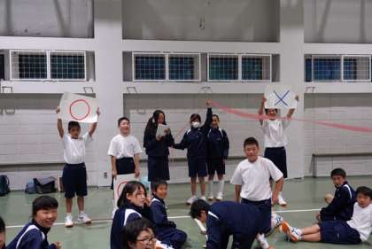 時間が余ったので、急きょドッヂボール大会を開催しています。 -