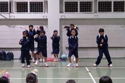 レク大会の最後は、有志によるダンスでした。TWICEの「TT」を軽快に踊っているところに、3人の教員がサプライズで加わり、大いに盛り上がりました。
