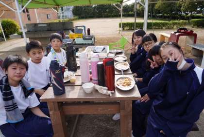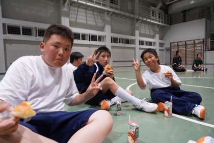 レク大会後、クラス対抗のドッジボールをして、一汗かいたところで夜食をいただきました。
