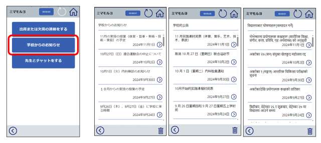 他にもネパール語、中国語、ハングルが選択できます。在学生の国籍に合わせ、言語を追加していきます。