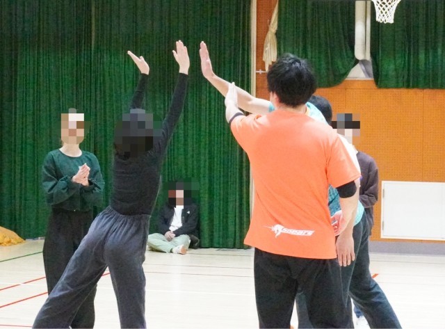 12月11日(木)11時から12時、株式会社クボタのバレーボールチーム、「クボタスピアーズ大阪」の方たちに来校いただき、有志の生徒にバレーボールを教えていただきました。チームのみなさんとウォーミングアップからパスのしかた、ミニゲームまでとても楽しくプレイさせていただきました。