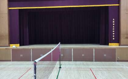 かいしゅうしているきょうしつのかんせいがせまってきました。いちばんにかんせいしたのは、しきてんやたいいくのじゅぎょうなどでかつようするたいいくかんです。ゆかがあたらしくはられ、ぶたいのそでまくには、「おおさかしりつしんわちゅうがこう」のもじがはいりました。たのきょうしつはどのようになるでしょう。