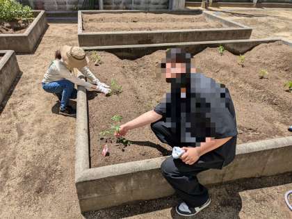 【昼間部】ガーデニングサークル始動 公開日 2025/05/08 更新日 2025/05/08 お知らせ 5月8日(木)、日東幼稚園の園児さんの来校と時を同じくしてガーデニングサークルが第1回目の活動を行いました。トマト・なす・ピーマン・さつまいもの苗を植えました。 生長が楽しみです( *´艸`) いいね(0)