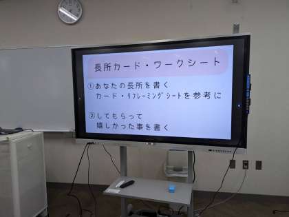 6月3日(火)5限、ソーシャルスキルトレーニングの一環として、「長所を見つけよう」をテーマに活動しました。