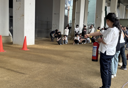 消火器の使い方の練習では、どちらの生徒も積極的に参加しました。