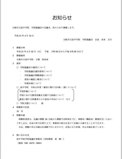 平成31年度 第1回学校協議会開催のおしらせ