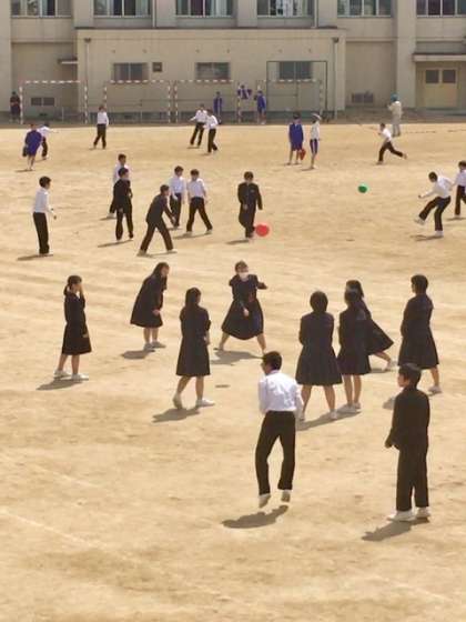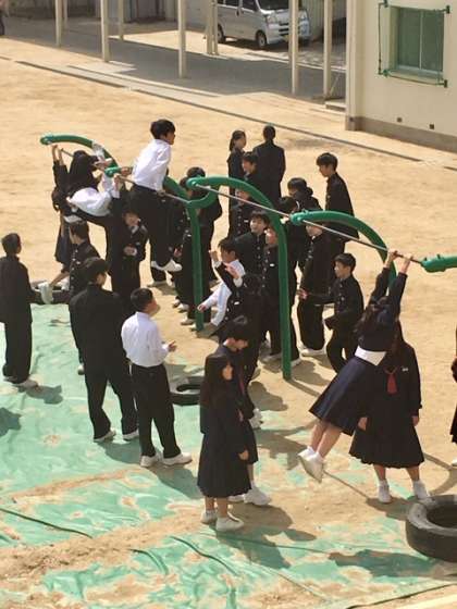 昨日から学級ボールの貸し出しが開始されました。生徒達はグラウンドに出て、思いっきり身体を動かしています。