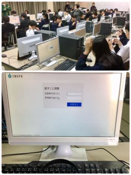 クラスごとにパソコン室に移動して、担当の先生から指示を受けて受験します。生徒達の表情は真剣そのものです。