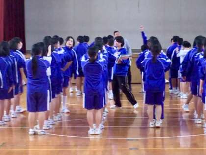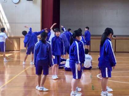 体育の授業です。小グループで主体的な活動を通して学習していました。