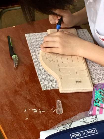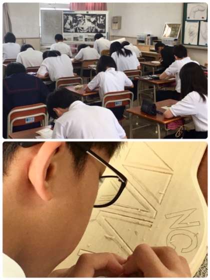 昨日、学校協議会で運営の計画が承認されました。運営に関する計画で美術科の授業の工夫改善の項で、道具を使用して誤って怪我をする生徒数0とありました。彫刻刀を使う授業でも、刃先のコントロールの指導を徹底したり、作品がズレないように滑り止めシートを使ったり、心地よい緊張感で油断をさせなかったり工夫の様子が見取れました。