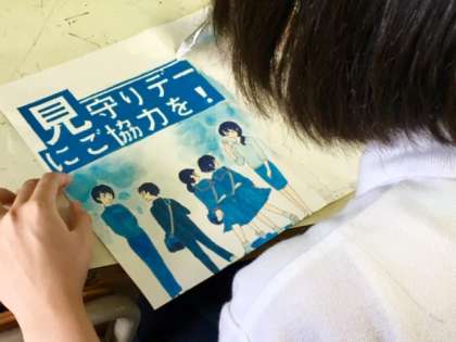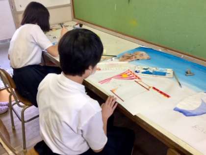 コツコツと作品を仕上げています。この作品は、PTAの方から依頼があったそうです。とても上手ですね。