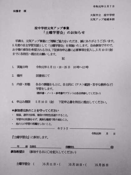 本日、土曜学習会のお知らせを配付しました。参加しましょう!