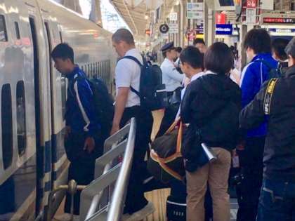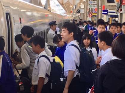 新幹線に乗り込みます。3年生はマナーを守って整然と乗車できています。