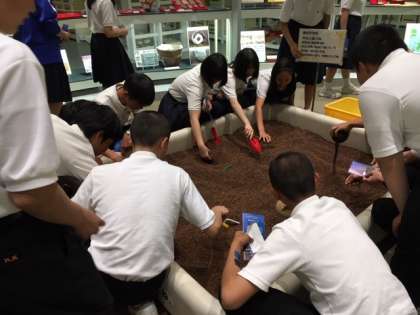 発掘調査の実習コーナーです。アレ?何か出てきたで。