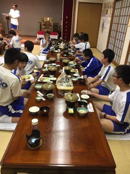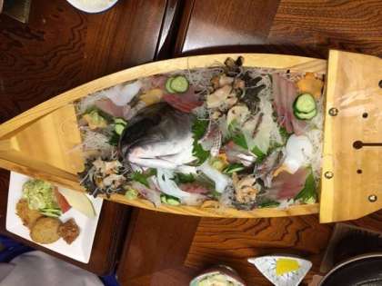 4組は、白鴎荘で夕食をいただいています。豪華な舟盛りにみんなびっくり!とても美味しいです。