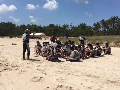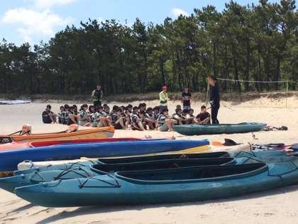 学級ごとに、マリンスポーツ体験が始まりました。