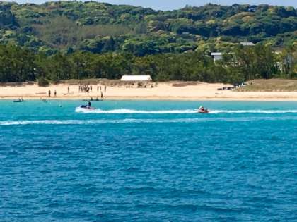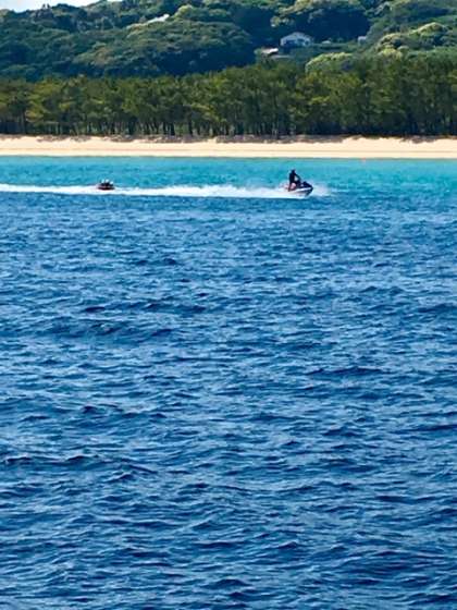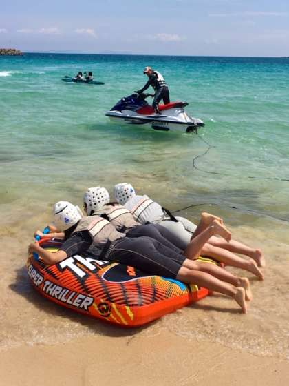 ビスケットボートです。青い海原を波を切って滑走する様子は、楽しそうです。浜辺まで大きな声が聞こえて来ます。
