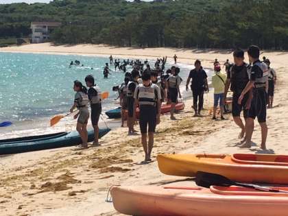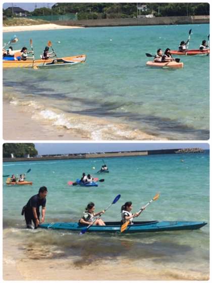 シーカヤックです。2人乗りです。2人の息を合わせてアメンボのようにスイスイ進みます。