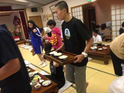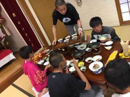 4組白鴎荘での夕食です。慣れた手つきで夕食の準備をお手伝いしています。